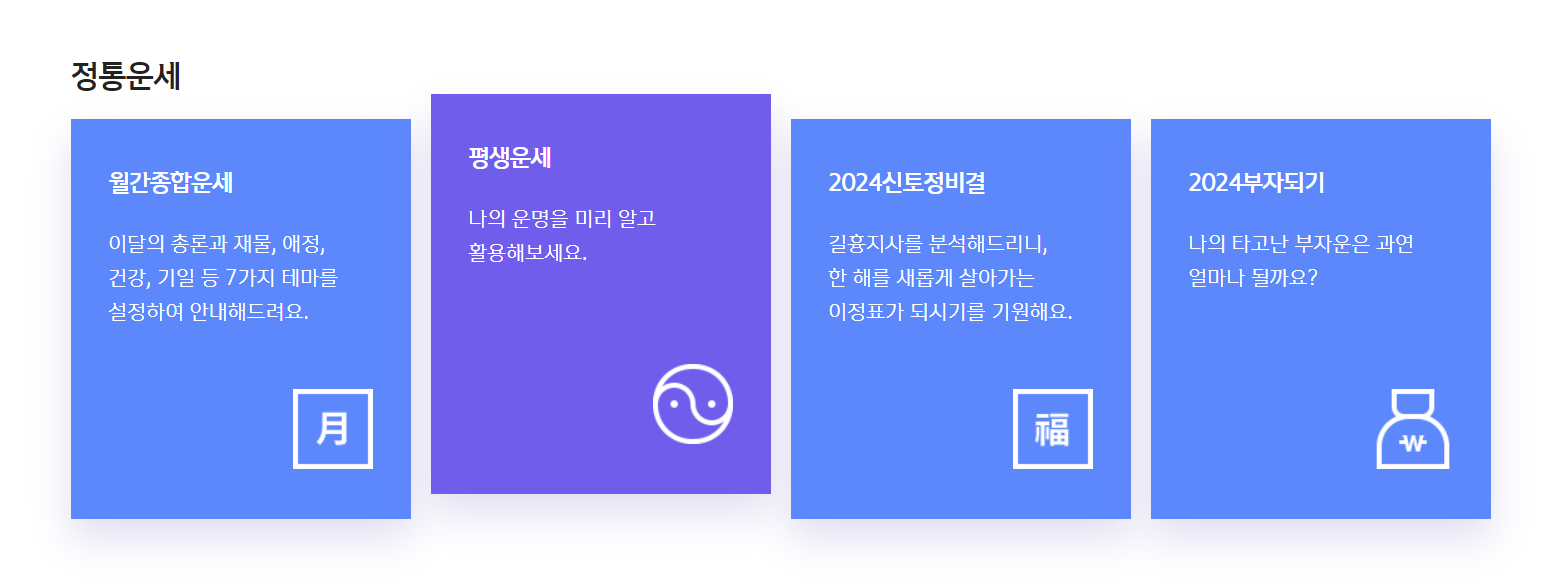 사이트에 접속하면 다양한 운세를 확인할 수 있습니다.