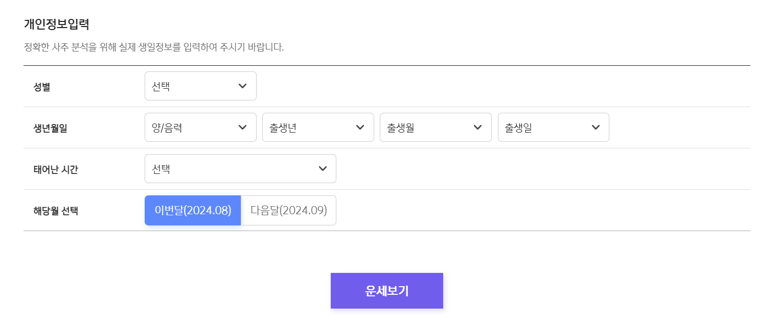 위와 같은 정보를 입력해 운세를 확인할 수 있습니다.