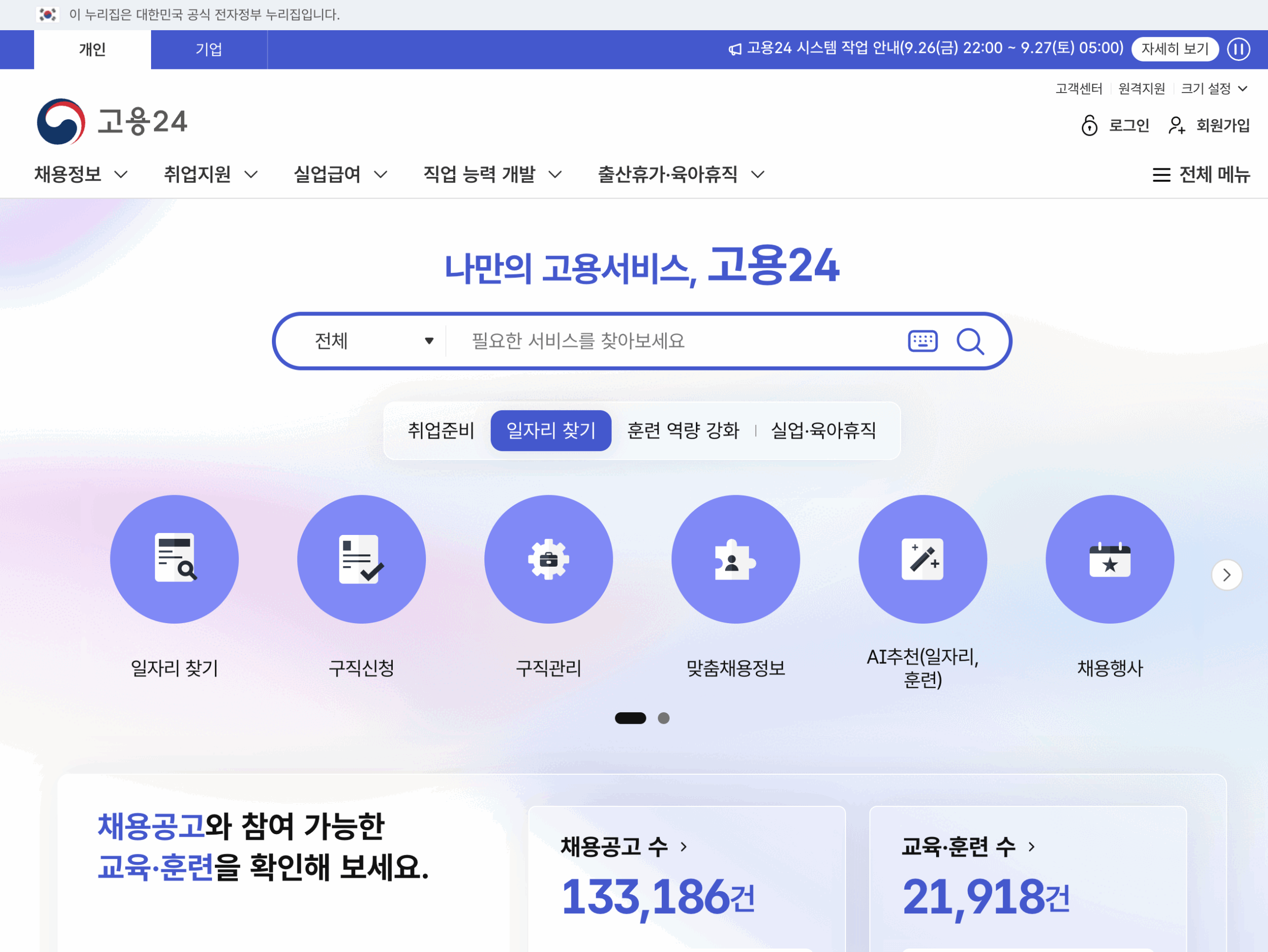 - 오프라인: 거주지 또는 사업장 소재지 관할 고용센터